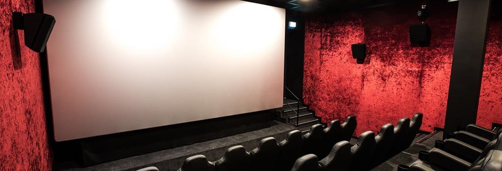 Moderner kleiner Kinosaal mit 36 Ledersesseln.
